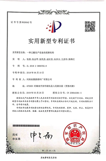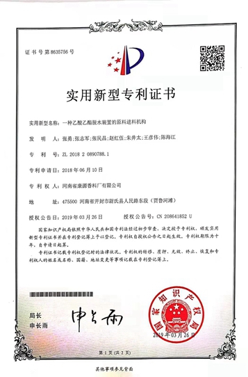 河南省康源香料廠有限公司坐落于尉氏人民路東段(賈魯河灘),是生產(chǎn)經(jīng)營(yíng)食用香精香料、食品添加劑、精細(xì)化工產(chǎn)品生產(chǎn)銷售的企業(yè),統(tǒng)一社會(huì)信用代碼:91410223799151685B,公司成立于1997年,注冊(cè)資金850萬元,廠區(qū)占地面積14300平方米,廠房建筑面積13600平方米,現(xiàn)有企業(yè)員工186人,其中擁有高、中級(jí)職稱技術(shù)人員48人,主要生產(chǎn)銷售產(chǎn)品有:食品添加劑(己酸乙酯、乳酸乙酯、丙酸乙酯、異丁酸乙酯、丁酸乙酯、 乙酸乙酯、庚酸乙酯乙酸異戊酯、辛酸乙酯、乙酸丙酯、苯乙醇、2,3丁二酮、冰乙酸(低壓羰基化法)、乳酸、己酸、丁酸、丙酸、乙縮醛、甘油、己酸烯丙酯、庚酸烯丙酯),食品用香精(食品用香精-液體),復(fù)配食品添加劑(復(fù)配酒類增味劑)實(shí)際綜合生產(chǎn)能力達(dá)到3萬噸/年,固定資產(chǎn)2810萬元,總資產(chǎn)13200萬元。